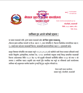 काठमाडौं, ४ असार। प्रहरीको साइबर ब्युरोले पत्रकार दिलभूषण पाठकलाई यथाशीघ्र उपस्थित हुन सार्वजनिक सूचना जारी गरेको छ। समाचार प्रसारण गरेकै आधारमा साइबर अपराध मुद्दामा पक्राउ पुर्जी जारी गरिएका पाठकलाई साइबर ब्युरो वा नजिकको प्रहरी कार्यालयमा उपस्थित भई अनुसन्धानमा सघाउन भनिएको छ।